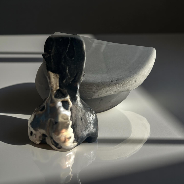 Broche artisanale en argent, résine et argile. Pièce unique au design organique et contemporain